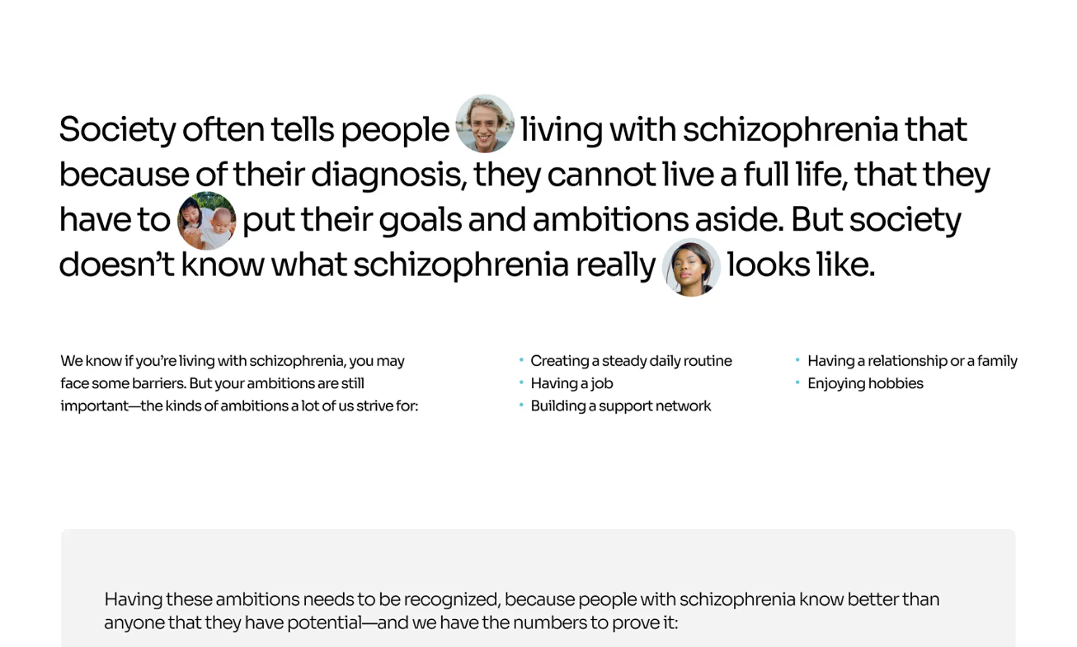 Live Your PosSCZible is an initiative focused on empowering people living with schizophrenia to recognize their strengths, passions and pursue their personal goals. Its mission is to challenge stigma by highlighting real stories that show what individuals with schizophrenia can achieve. LYP provides resources, tools, and community support to help people plan for their future and live their best life now.