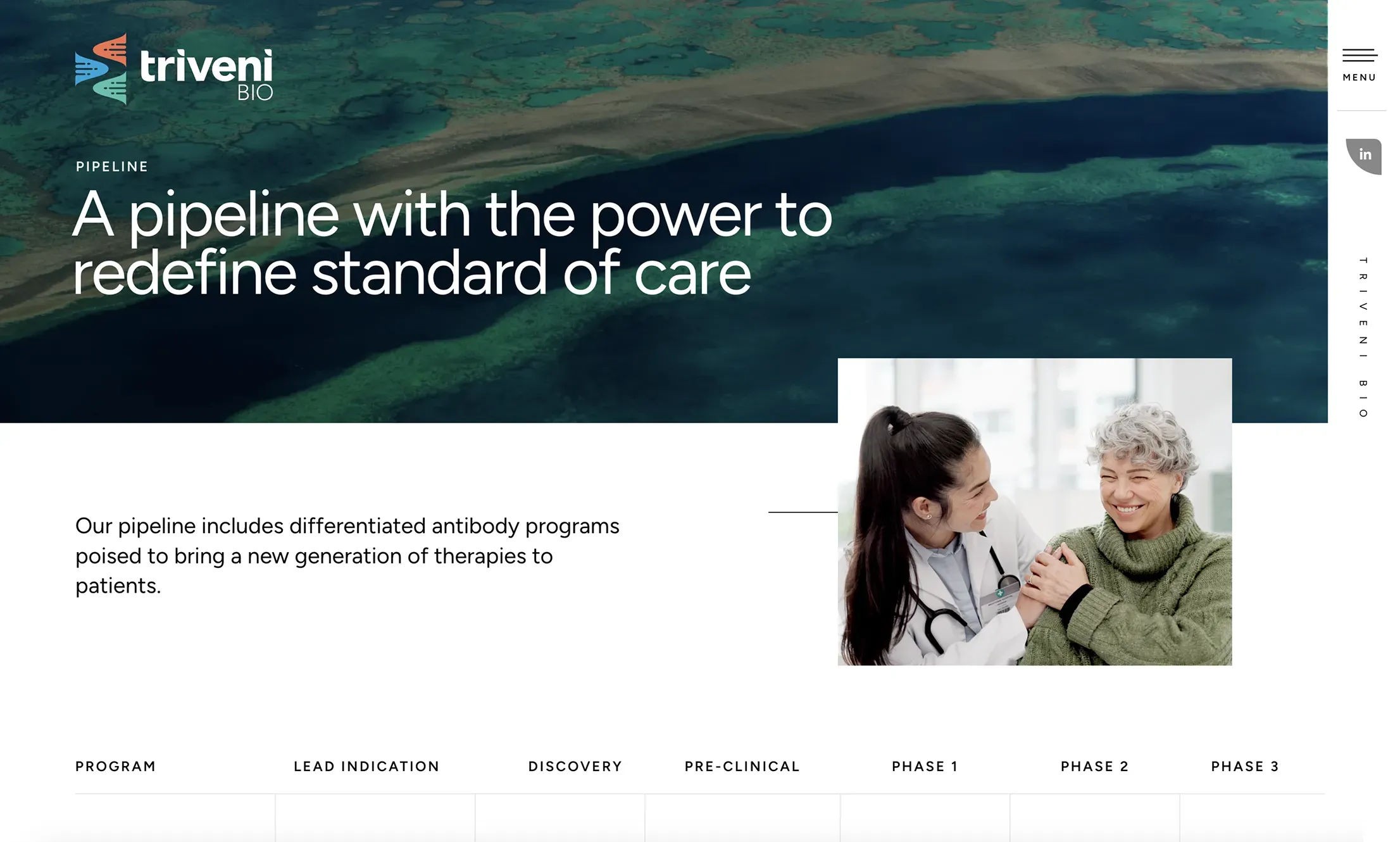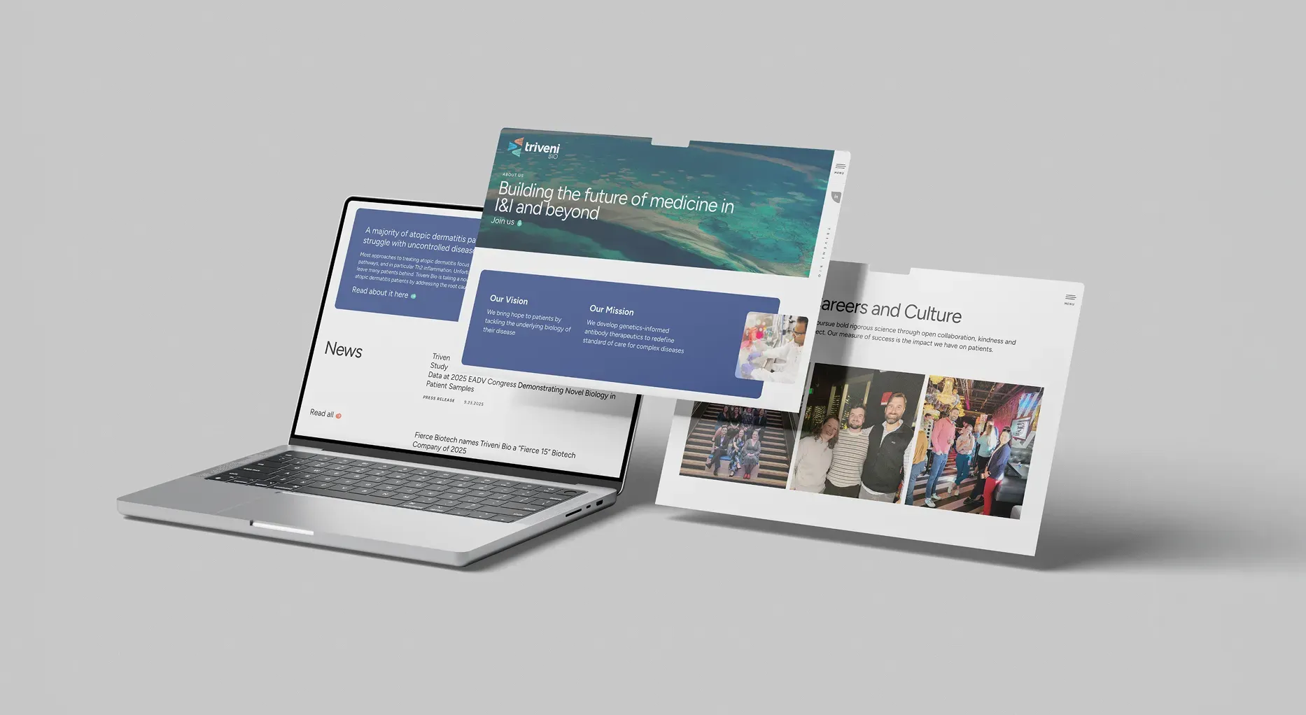 To redesign and reimagine-The word Triveni means confluence in Sanskrit, so we refined their site to let their message flow to elevate their story on how they are raising the bar and breaking efficacy ceilings.